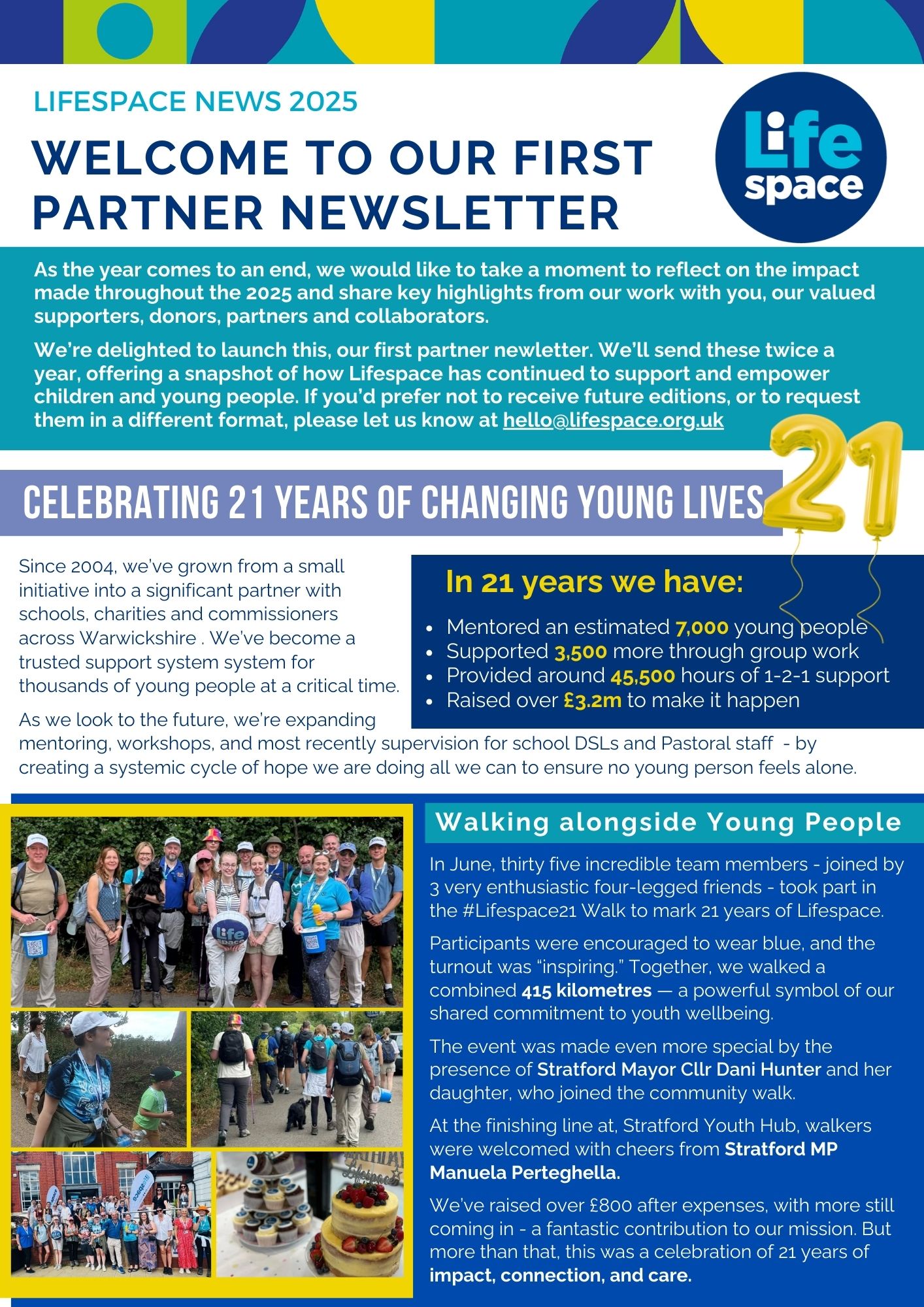 Lifespace is proud to announce the launch of its very first Partner Newsletter, marking a significant milestone - 21 years of supporting young people across Warwickshire. Since its founding in 2004, Lifespace has grown from a small initiative into a trusted partner for schools, charities, and commis ...